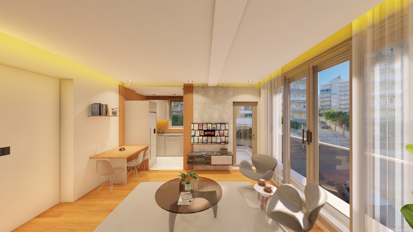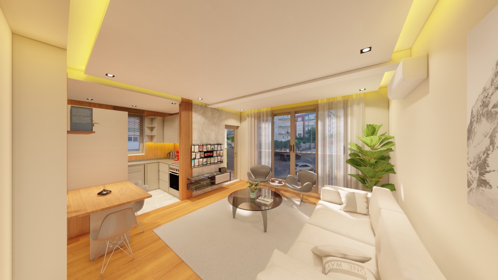 Projemiz, modern mimarinin minimalist çizgilerini, doğanın sıcaklığı ile buluşturmak üzere tasarlandı. Her daire, gün ışığından maksimum düzeyde faydalanacak şekilde konumlandırılmış geniş pencerelere ve ferah yaşam alanlarına sahiptir.